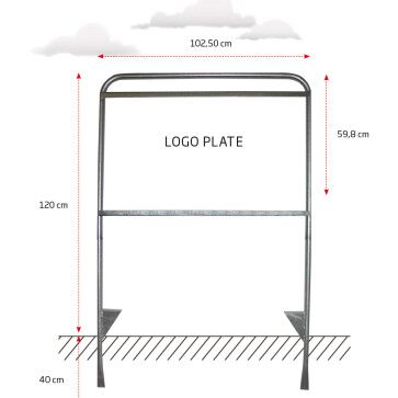 Stærk skilteholder produceret i 32 mm galvaniseret stålrør med skinner. Kan stikkes 40 cm i jorden.