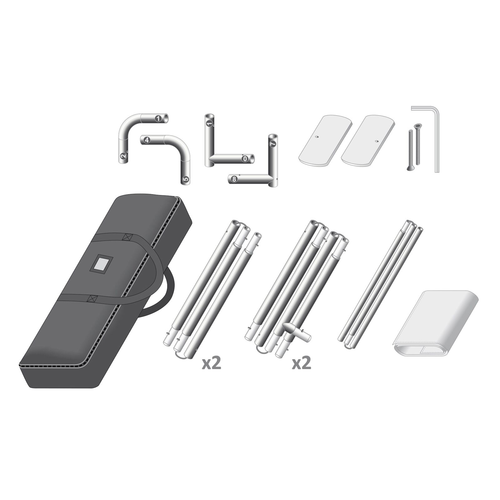Rammen er lavet af aluminiumsrør og er nem at samle.